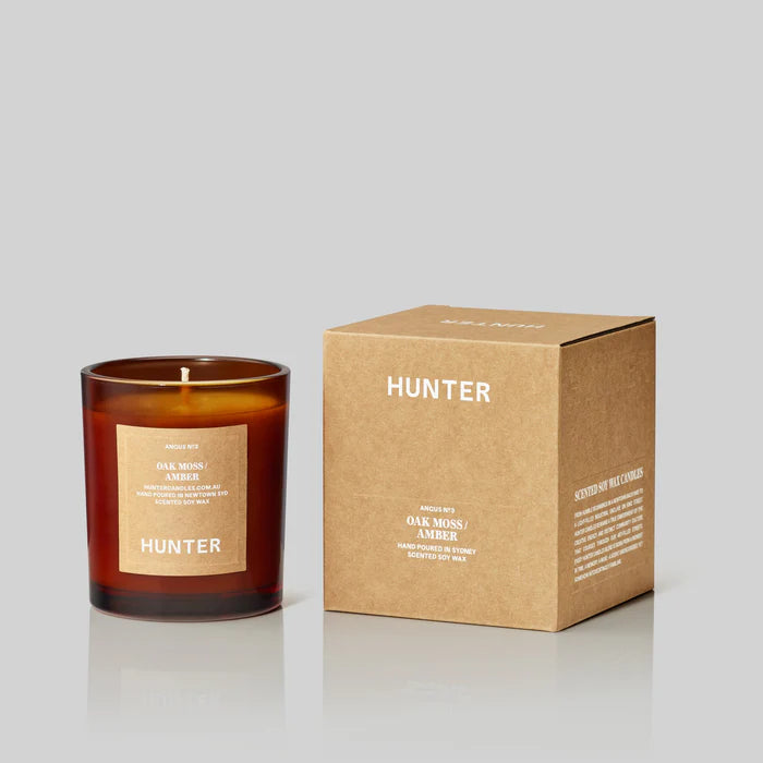 Hunter Candles are hand-poured using Ecosoya wax, made using pure soybeans. The wax is biodegradable and free from pesticides, palm oil, petroleum and GMOs. Hunter Candles use full fragrance, which is non-toxic.